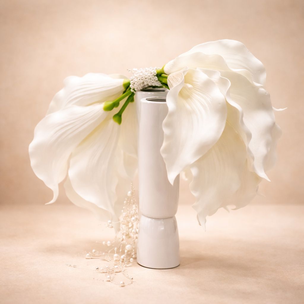 Hafif yapısı sayesinde gün boyu rahat kullanım sunar.Doğal görünümlü çiçek dokuları ve özenle hazırlanmış detaylarıyla düğün fotoğraflarınıza romantik ve sofistike bir hava katar.