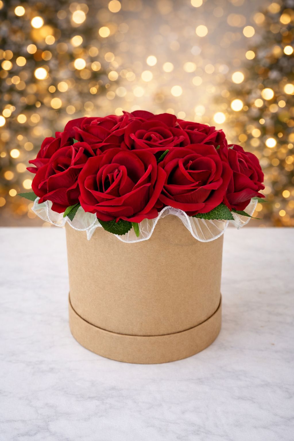 Zarafetin ve aşkın en güçlü sembolü kırmızı güller,modern ve sade kraft silindir kutu ile buluştu.Özdenle hazırlanan bu şık aranjman;sevdiklerinize duygu dolu bir jest yapmak,özel günlerini unutulmaz kılmak veya yaşam alanlarına estetik bir dokunuş eklemek için ideal bir seçimdir.