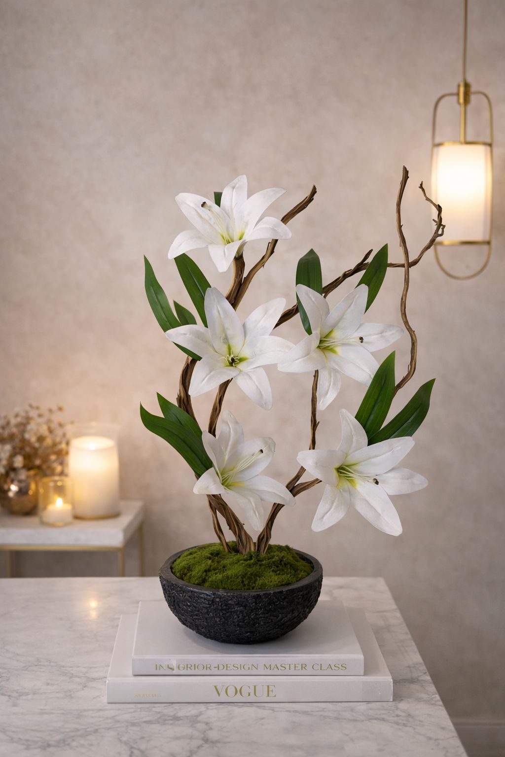 Doğal görünümlü gerçek ağaç dalları üzerine 1.sınıf yapay lilyumlar ve şık tasarım.Uzun ömürlü,bakım gerektirmeyen, zarif dekoratif ürün.
