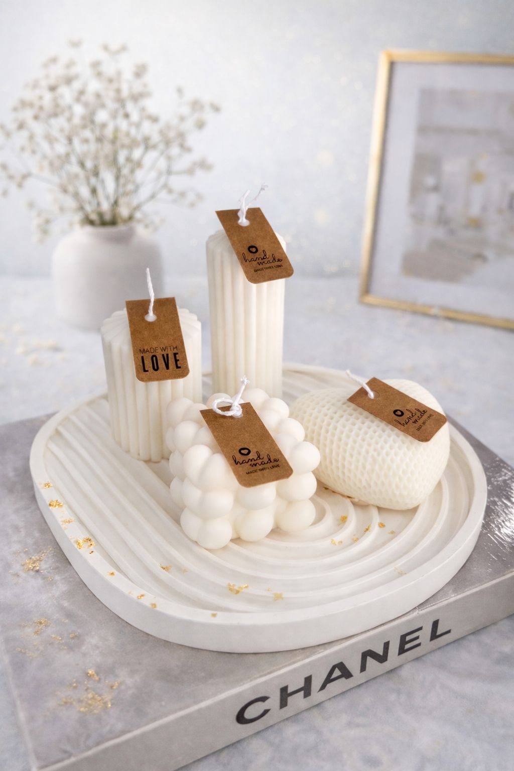 Minimal tasarımları ve %100 doğal soya wax ile hazırlanan el yapımı mum seti,bulunduğu ortama sıcak,mis kokulu ve şık bir atmosfer katar.Dekorasyon ve özel gün hediyeleri için zarif bir tercih.