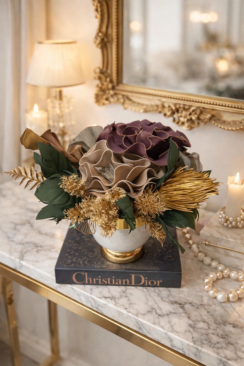 Metal vazo üzerine lüks lateks çiçeklerle hazırlanan aranjman.Uzun ömürlü,bakım gerektirmez.Salon,ofis ve özel gün hediyesi için harika bir ürün.